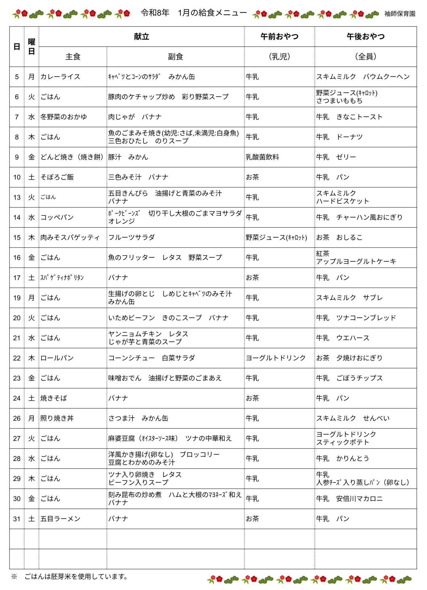 1月の給食献立ができましたので、お知らせいたします!